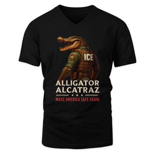 Alligator Alcatraz Funny Florida Everglades Dark Humor ICE V Neck