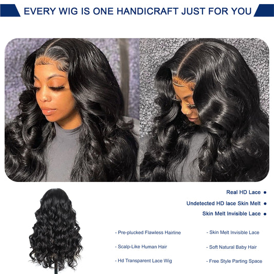 Gadgetste® Skinlike HD Lace Wig – 100% Virgin Human Hair, Pre-Plucked Glueless Body Wave Wig