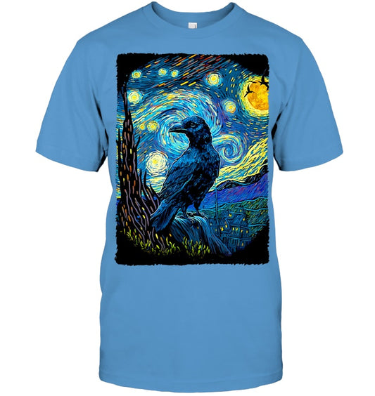 Raven Starry Night Style Painting, Van Gogh Crow Lover T Shirt